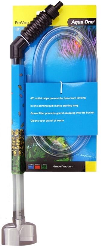 This is a ProVac Gravel Cleaner for Aquariums by Aqua One. The Aqua One ProVac Gravel Cleaner is a fast and effective way to perform aquarium water changes. It quickly removes both waste and water from the aquarium so all that’s left to do for you is to top it up with fresh, conditioned water. These tubes are available in various sizes for whichever suits your personal needs the best. It contains a gravel filter which prevents gravel from escaping into the bucket and cleans your gravel of waste and debris.