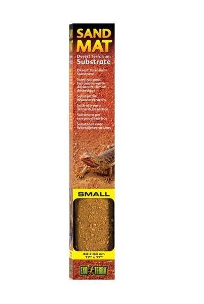 This is a Exo Terra Sand Mat Reptile Substrate for Snakes, Lizards. The Exo Terra Sand Mat has a natural desert appearance and can be applied as a safe & hygienic substrate substitute for your reptiles. The Sand Mat allows you to create a desert-like environment with a minimum of bacterial build up. Unlike loose sand or soil, the Sand Mat cannot be accidentally ingested. The texture of the Sand Mat enables your reptile to have a firm grip on the substrate, increasing your reptile’s sense of safety and comfort. Sturdy, hygienic and easily removable, the Exo Terra Sand Mat is easy to use and can be cut to fit any terrarium size. Simply rinse clean when soiled or replace as necessary.