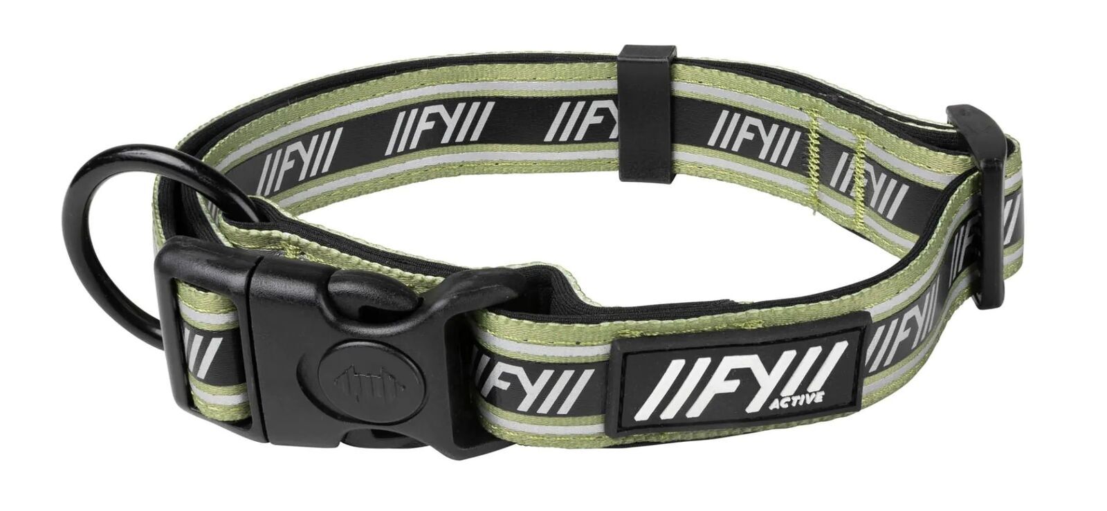 This is a FuzzYard Active Dog Collar - Khaki - X-Small (25-37cm). Active Collars are made from a comfy neoprene and include a high quality buckle with lock. Your dog will be comfortable but secure for all your daily adventures. Top it all off with a reflective pattern print, your dog will be standing out for all the right reasons.
