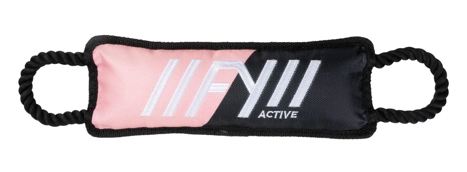 This is a FuzzYard Active Dog Toy - Rope Tug - Peach. If your dog loves playing tug, the FY Active Rope Tug Toy is perfect for you. Featuring a strong looped rope which runs through the whole construction of the toy, strong material and squeaker, this toy is built to last all tug of wars.