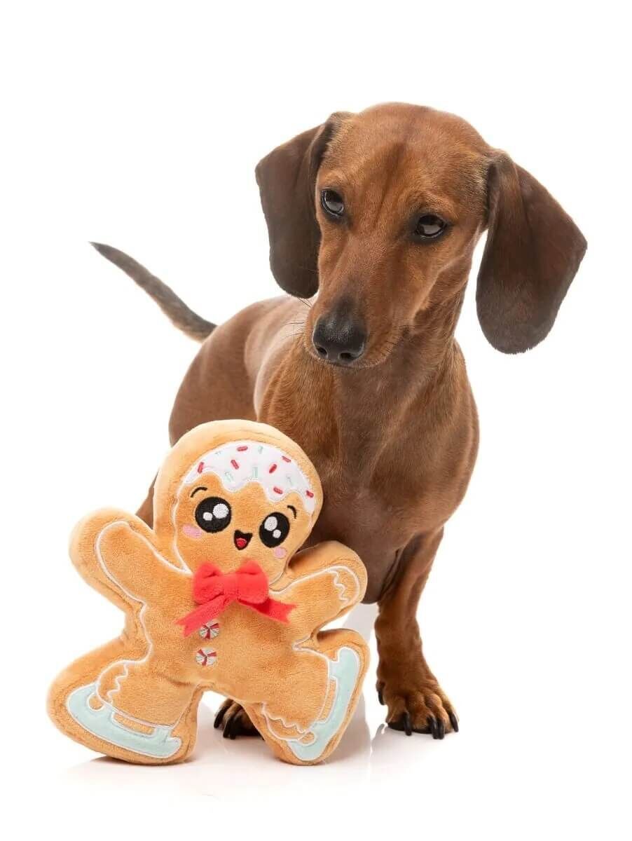 This is a FuzzYard Dog Toy - Biscuit Blader. Skating in with sugar, spice, and a little bit of squeaky nice—Biscuit Blader is here to make the holidays extra sweet! With frosted skates, twinkly eyes, and a bowtie that says ready to impress, this gingerbread cutie is all about spreading joy, one playful chomp at a time.