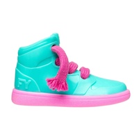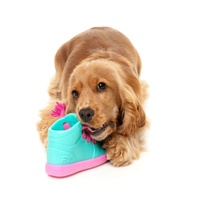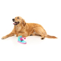 This is a FuzzYard Dog Toy - Fresh Kicks N Licks. Give bad breath the boot with FuzzYard's Fresh Kicks 'n' Licks. Finally, a shoe your ALLOWED to chew on! Featuring rope laces that floss teeth, and a licki groove sole for filling with paste and scrubbing tongues, our shoe toy is the least boring way to maintain good oral hygiene. FLOSS, CLEAN, AND CHEW! - this sneaker really does it all. While other brands may have ok chew toys that clean your pets teeth - THIS IS THE COOLEST WAY TO DO IT!! Why chew on a boring ball when you can gnaw on a sneaker fresher than the one on your mum or dads feet! Street style, a funky colour combo and awesome features - this extra engaging chew toy is the ultimate 3-in-1 boredom buster for your pet. So kick boredom whilst you kick stinky breath - with FuzzYards Fresh Kicks n' Licks!