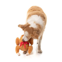 This is a FuzzYard Dog Toy - Let's Get Basted - Small. It’s time to turn up the heat this Christmas with Let’s Get Basted Roast—the juiciest, most dressed-up roast to ever grace the holiday feast! This golden-brown beauty comes fully basted, perfectly plush, and decked out with a festive red bow, making it the ultimate main course for playtime. Your pup will be drooling over this roast (literally), whether they’re giving it a good chomp, a festive toss, or parading it around like the true Christmas chef they are. With a squeaker inside for that oven-fresh crunch and drumsticks ready for some serious shaking, this roast is serving up five-star fun all season long.