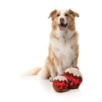 This is a FuzzYard Dog Toy - Merry Puddin - Small. Serve up some squeaky-sweet holiday joy with Merry Puddin’, the festive dessert your pup actually gets to devour! Topped with a plush holly garnish and wrapped up with a fancy red bow, this Christmas classic is bringing all the festive charm—minus the sticky fingers (or paws). With its round, bouncy shape and an irresistible squeaker inside, this pud is ready to roll into playtime, cuddle time, and everything in between. Whether your pup is tossing it around or snuggling up after a holiday feast, this plushy treat is the cherry on top of the Christmas fun!