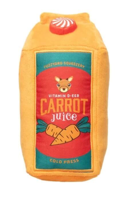 This is a FuzzYard Dog Toy - Reindeer Carrot Juice & Carrot - 2 Pack. The official fuel of Santa’s reindeer is now available for your pup—with extra squeak! Reindeer Carrot Juice & Carrot is packed with festive crunch, featuring a plush juice carton and a squeaky carrot that’s way more fun than the real thing. Hydration? Maybe not. Holiday chaos? Absolutely.