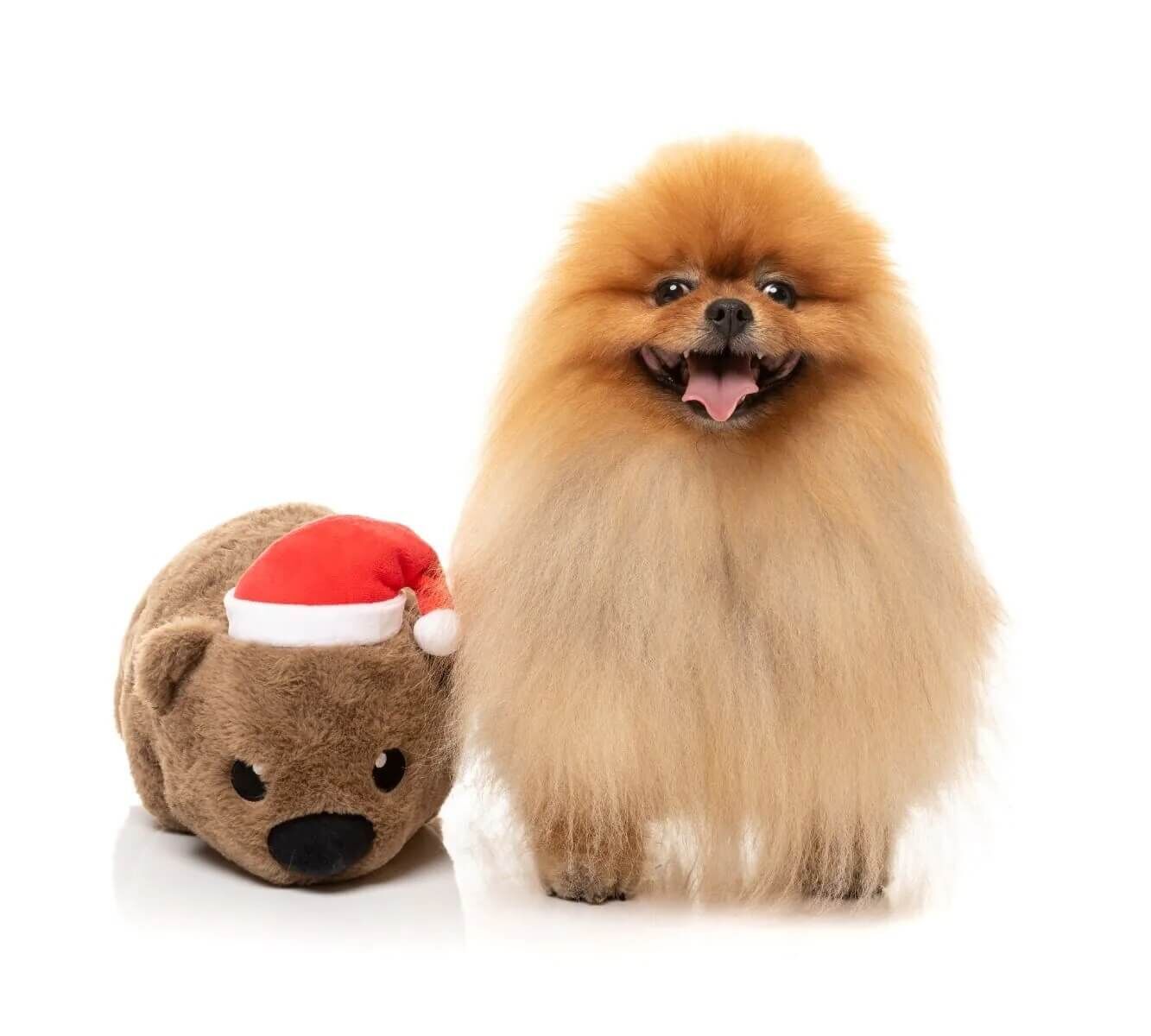 This is a FuzzYard Dog Toy - Wallace Wombat - Small. Straight out of the Aussie bush and into your pup’s Christmas stocking, Wallace Wombat is here to roll into the holiday season with maximum cuddle appeal. Dressed in a festive Santa hat and rocking that signature wombat waddle, Wallace is the perfect companion for both playtime and snuggles. With a plump, squishy body and a hidden squeaker inside, Wallace is built for interactive fun. Whether your pup is up for a wild wrestling match or a cozy Christmas nap, this little burrower is up for the job. Just don’t be surprised if Wallace becomes the most sought-after guest at your holiday gatherings.