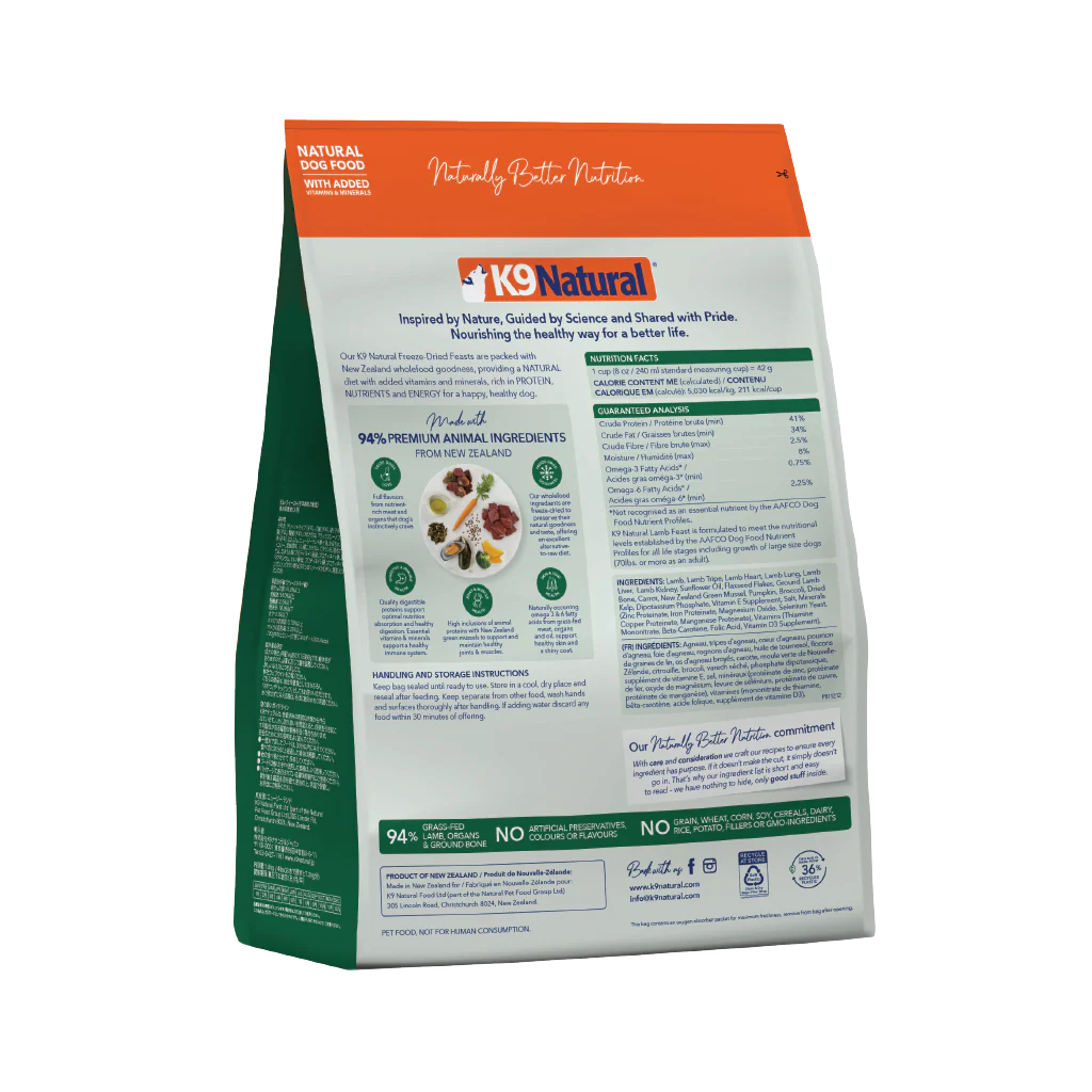 K9 Natural Freeze Dried Dog Food - Lamb Feast - 1.8kg
