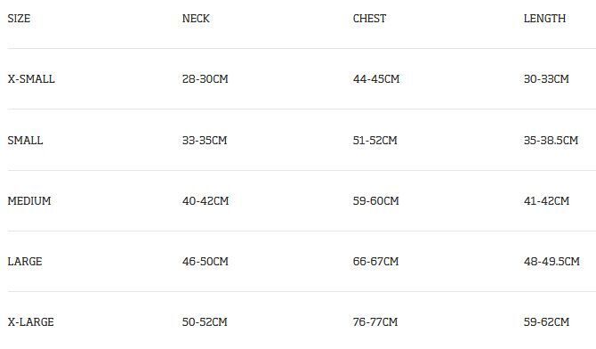 SIZE NECK CHEST LENGTH