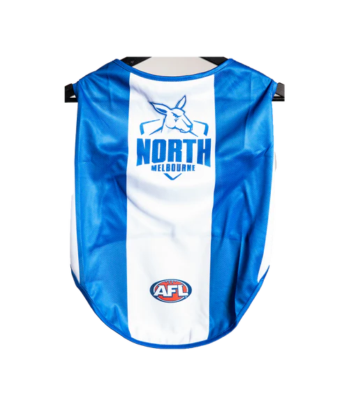 This is a AFL North Melbourne Kangaroos Dog Jersey Shirt. This AFL dog jersey is the perfect piece of dog merchandise for your team's newest supporter. Made with a light breathable material, you can add an extra layer of warmth all while supporting your beloved team. See size chart available to get the ideal fit for your pup. Professionally printed with dye-sublimation. Made from 100% breathable polyester. For cleaning, hand wash and hang to dry. Can be worn year round with a breathable material. Official AFL Merchandise.