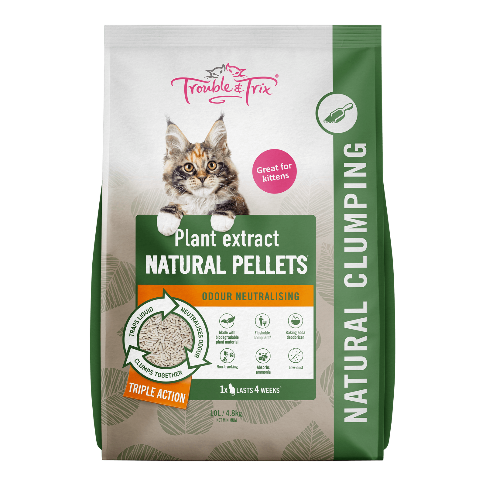 Trouble & Trix Natural Pellets Clumping Litter - Scent Free - 10L (4.8kg)