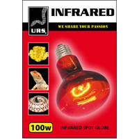 This is a URS Infrared Spot Heating Globe Bulb for Reptiles, Snakes, Lizards. Improved quality incandescents that come individually packaged in foam boxes inside brightly updated packaging. These Infrared Spot Lamps are an ideal way of heating your reptiles as well as viewing them without disturbing them at night. These incandescent globes are ES.